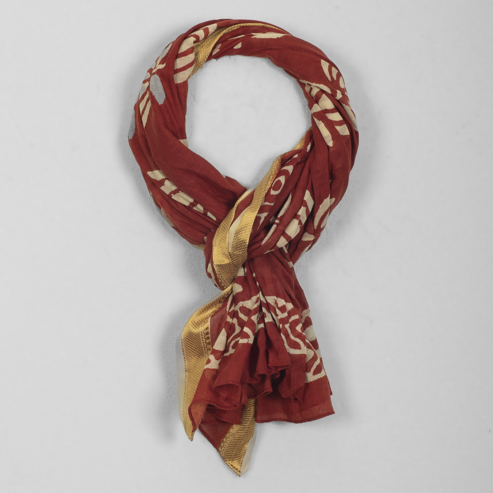 Block Printed Pareo – Stole  in 100% cotton fabric, dimensions: 110 x 180 cm.